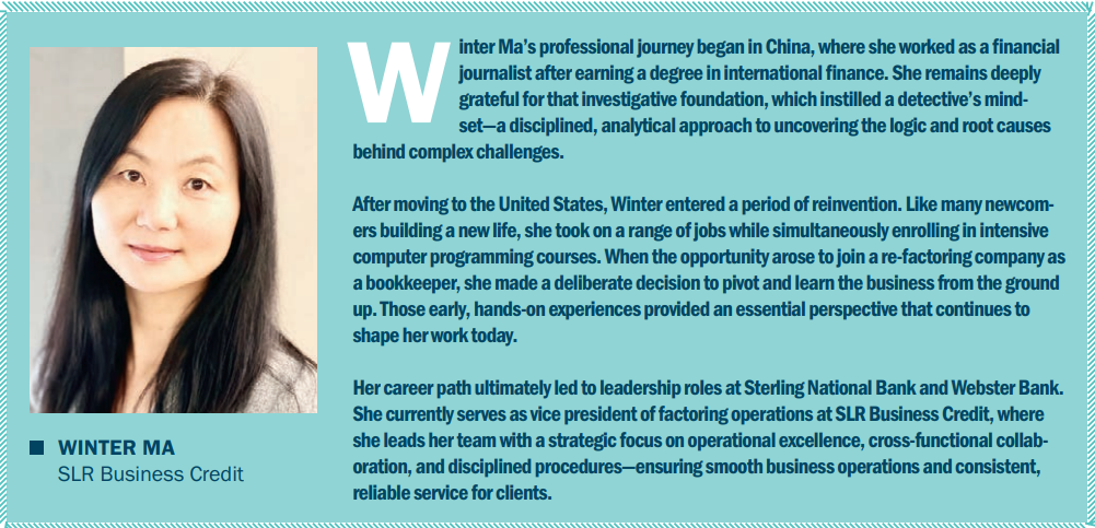 Winter Ma of SLR Business Credit is featured on page 65.